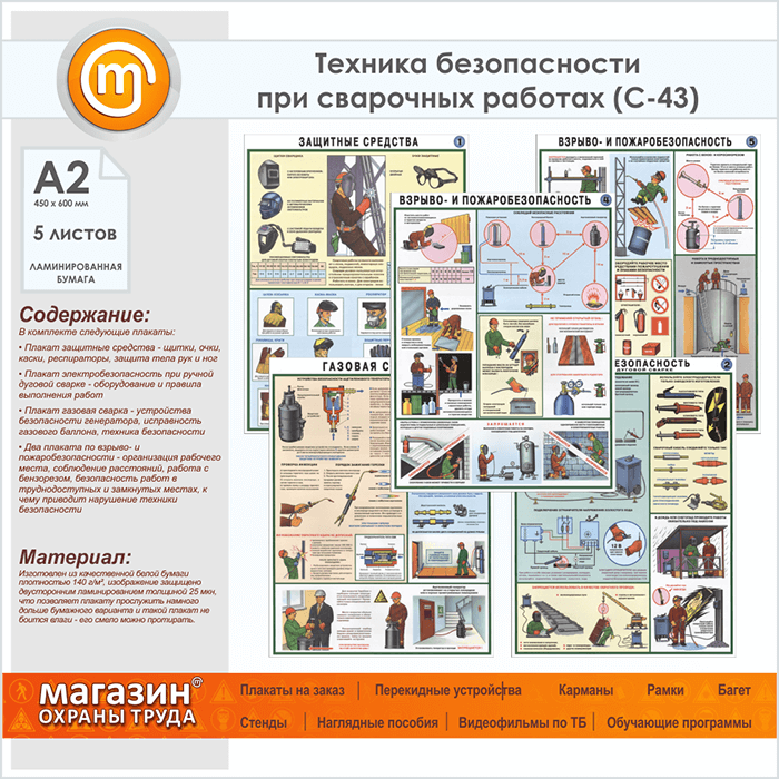 Плакаты «Техника безопасности при сварочных работах» (С-43, ламинированная бумага, А2, 5 листов) в Твери купить