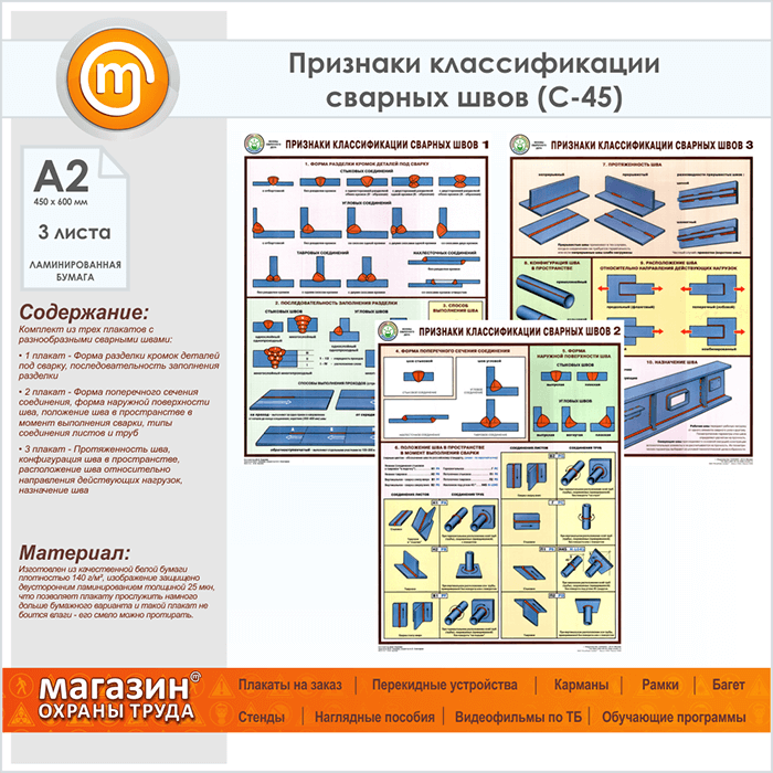 Плакаты «Признаки классификации сварных швов» (С-45, ламинированная бумага, А2, 3 листа) в Твери купить