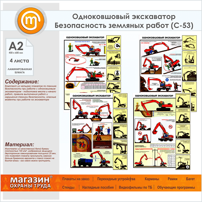 Плакаты «Одноковшовый экскаватор. Безопасность земляных работ» (С-53, ламинированная бумага, А2, 4 листа) в Твери купить