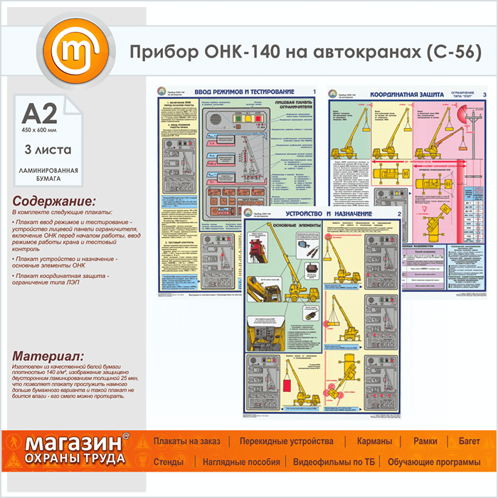 Плакаты «Прибор ОНК-140 на автокранах» (С-56, ламинированная бумага, А2, 3 листа) в Твери купить