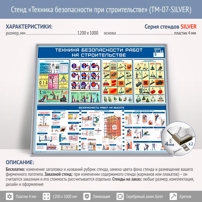 Стенд «Техника безопасности при строительстве» (TM-07-SILVER) в Твери купить