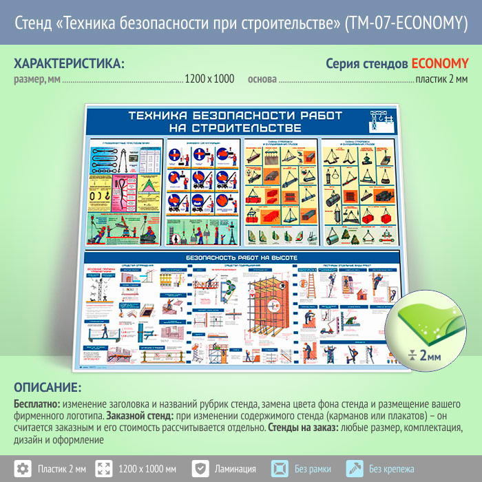 Стенд «Техника безопасности при строительстве» (TM-07-ECONOMY) в Твери купить