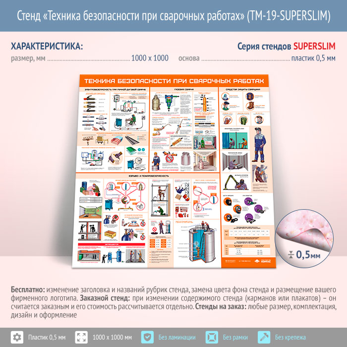 Стенд «Техника безопасности при сварочных работах» (TM-19-SUPERSLIM) в Твери купить