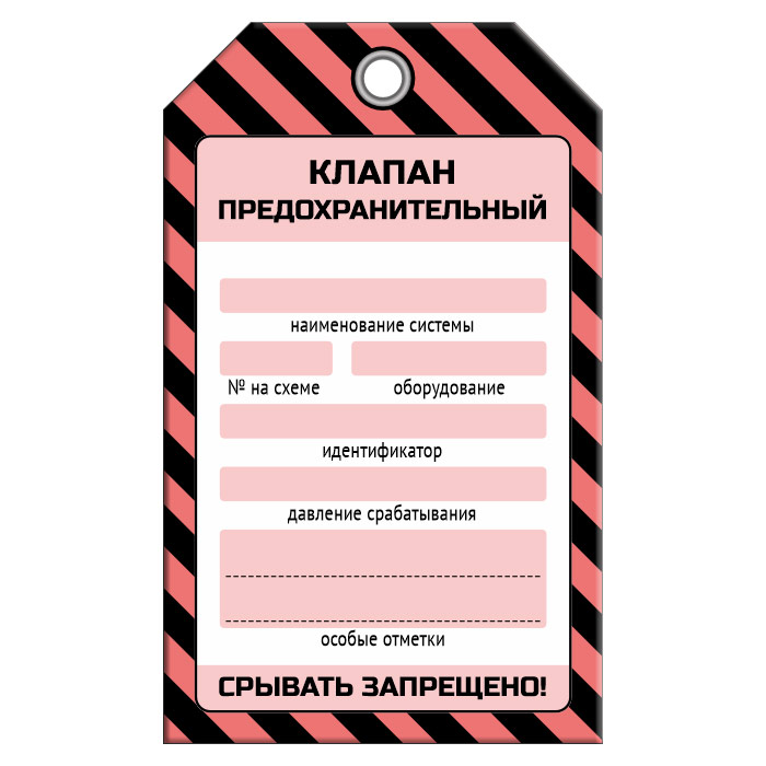 Бирка «КЛАПАН ПРЕДОХРАНИТЕЛЬНЫЙ» (1 шт., односторонняя, пластик, 70х115 мм) в Твери купить