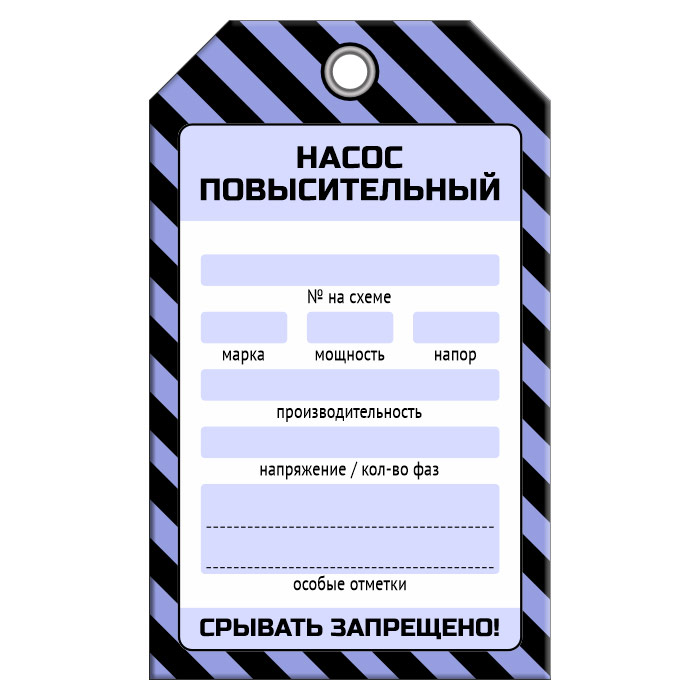 Бирка «НАСОС ПОВЫСИТЕЛЬНЫЙ» (1 шт., односторонняя, пластик, 70х115 мм) в Твери купить