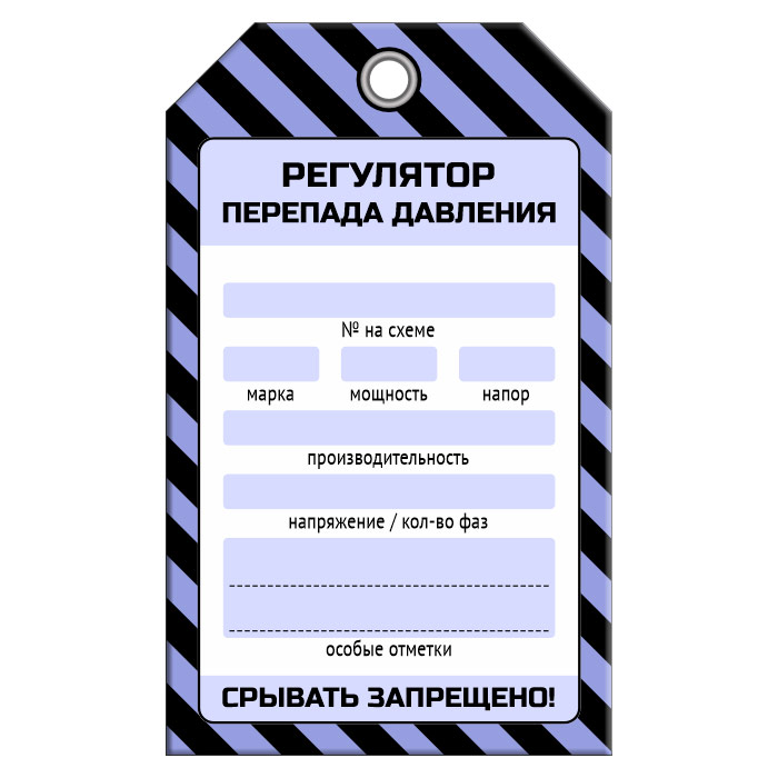 Бирка «РЕГУЛЯТОР ПЕРЕПАДА ДАВЛЕНИЯ» (1 шт., односторонняя, пластик, 70х115 мм) в Твери купить