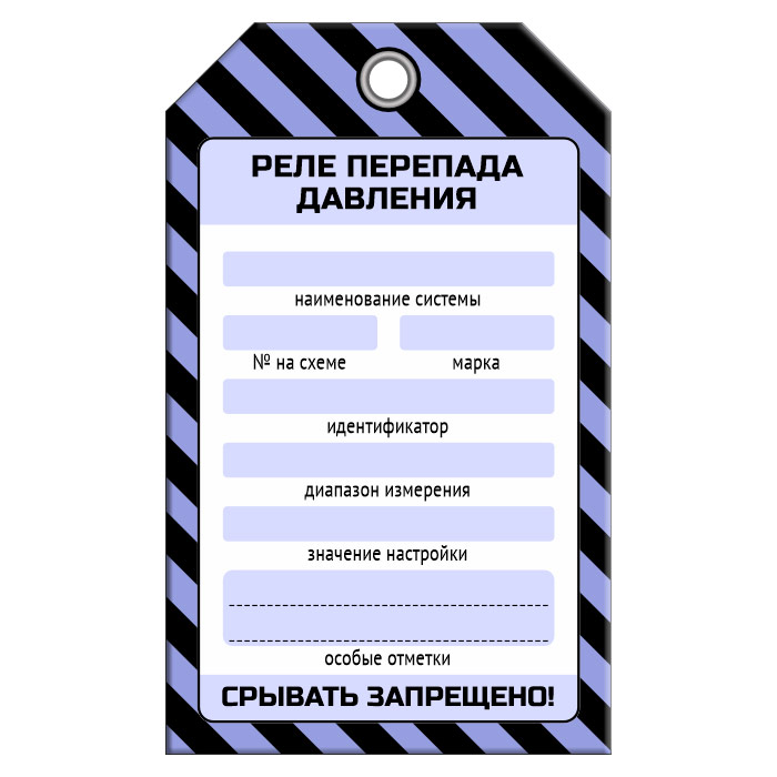 Бирка «РЕЛЕ ПЕРЕПАДА ДАВЛЕНИЯ» (1 шт., односторонняя, пластик, 70х115 мм) в Твери купить