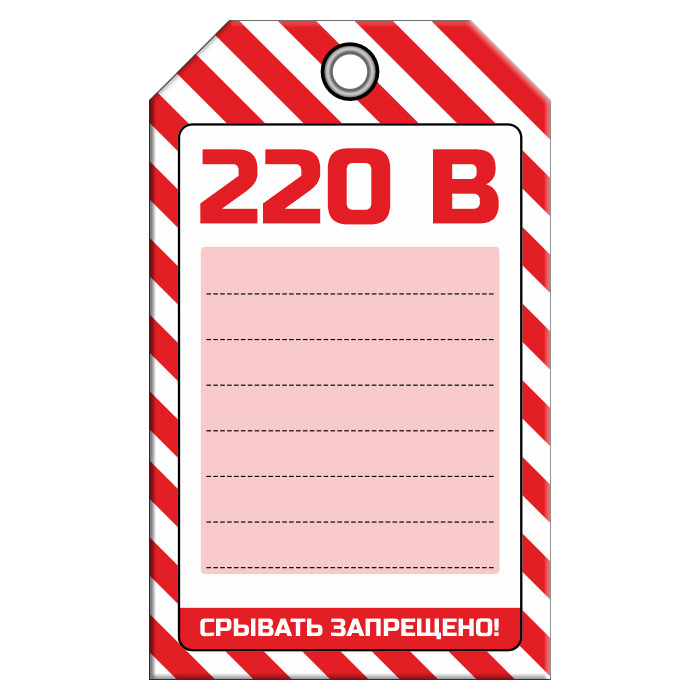 Бирка «НАПРЯЖЕНИЕ 220 В» (1 шт., односторонняя, пластик, 70х115 мм) в Твери купить