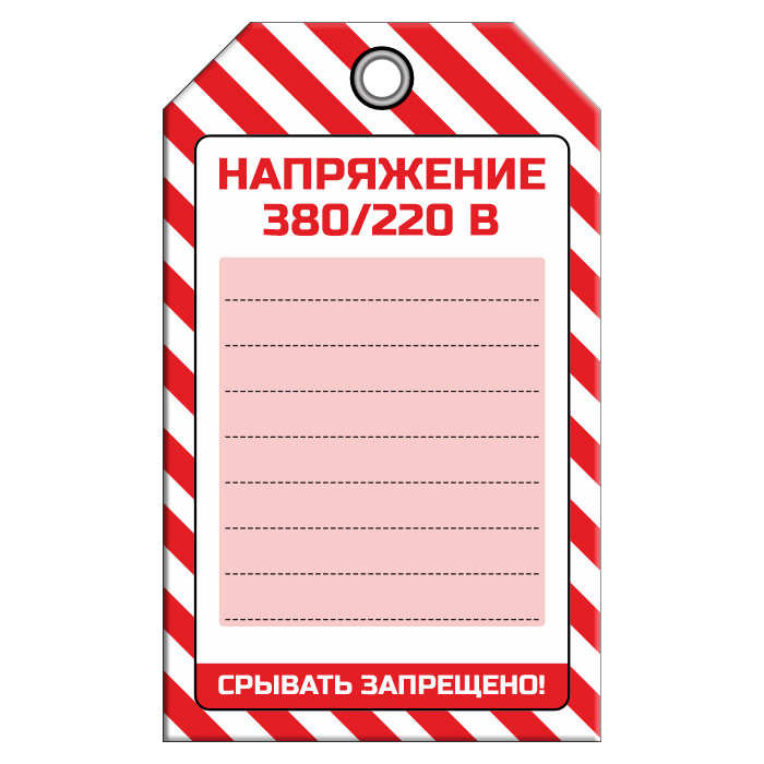 Бирка «НАПРЯЖЕНИЕ 380/220 В» (1 шт., односторонняя, пластик, 70х115 мм) в Твери купить