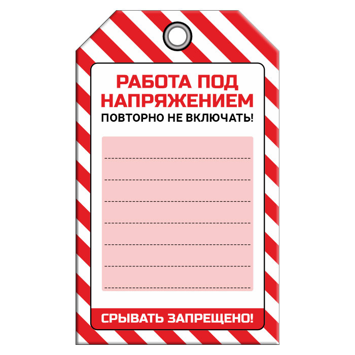 Бирка «РАБОТА ПОД НАПРЯЖЕНИЕМ» (1 шт., односторонняя, пластик, 70х115 мм) в Твери купить