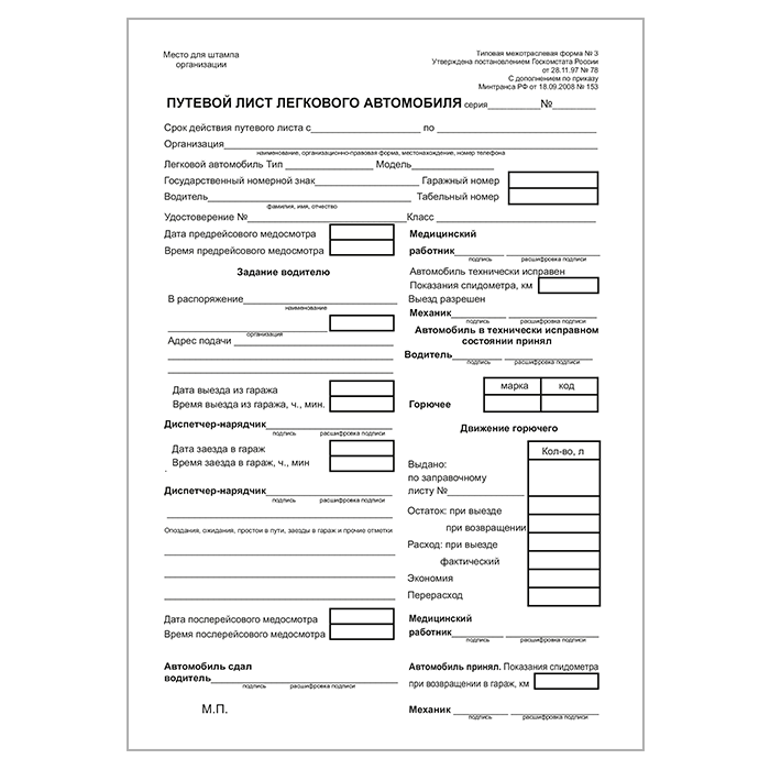 Путевой лист легкового автомобиля (форма № 3, упаковка из 100 штук) в Твери купить