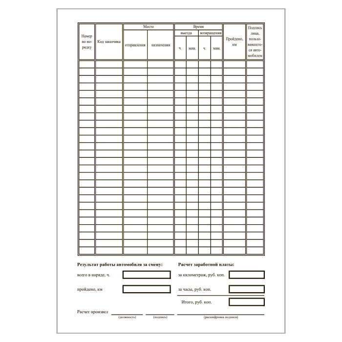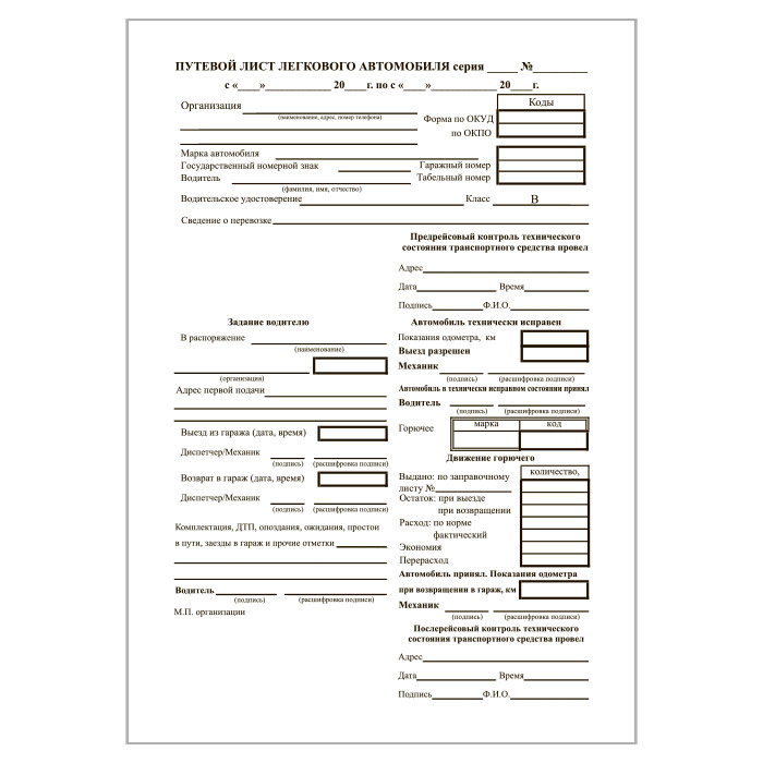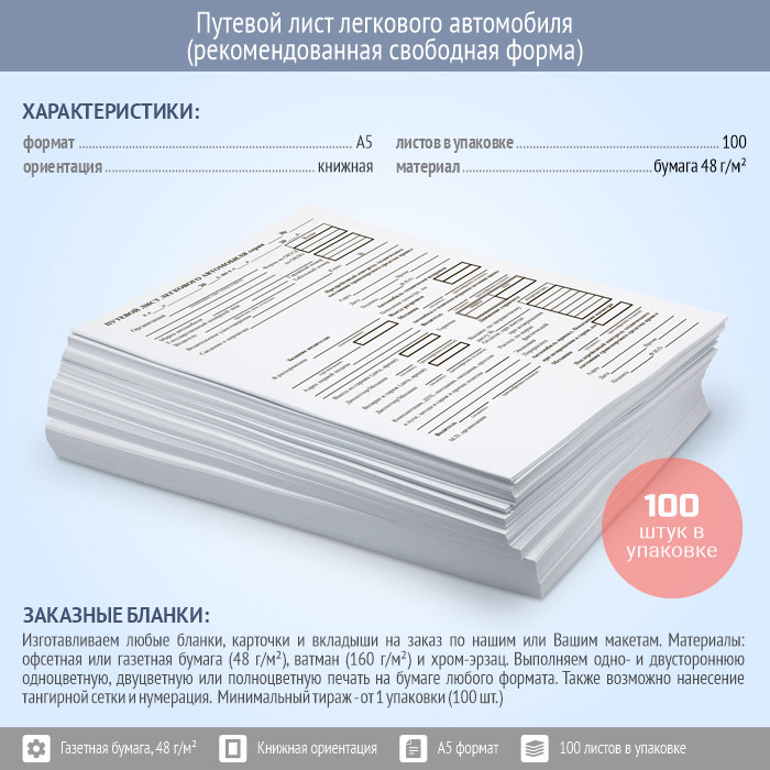 Путевой лист легкового автомобиля (рекомендованная свободная форма, упаковка из 100 штук) в Твери купить