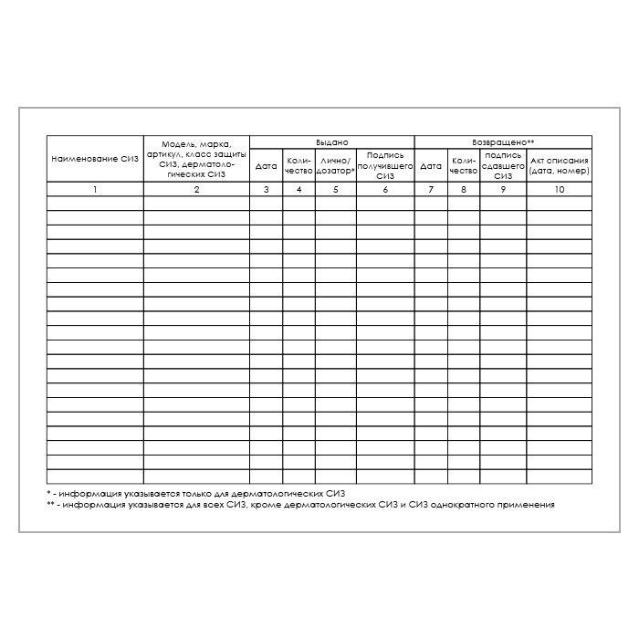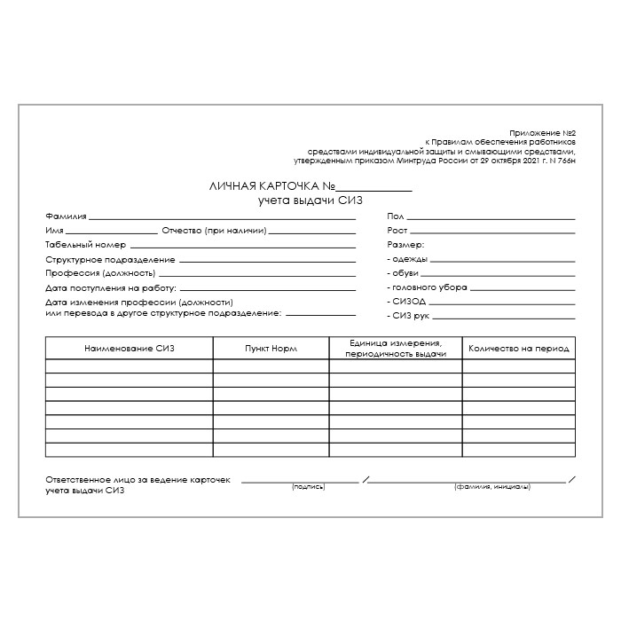 Карточка выдачи СИЗ (приказ Минтруда России от 29 октября 2021 г. №766н, упаковка 100 штук) в Твери купить