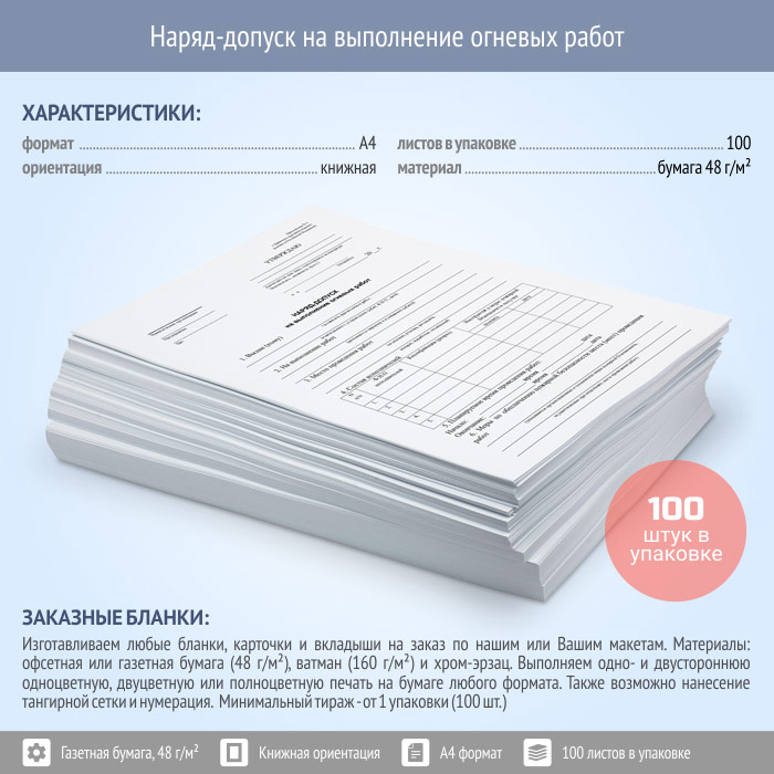Наряд-допуск на выполнение огневых работ (упаковка из 100 штук) в Твери купить