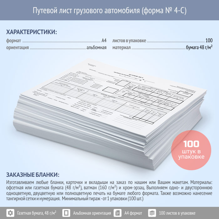 Путевой лист грузового автомобиля (форма № 4-С, упаковка из 100 штук) в Твери купить