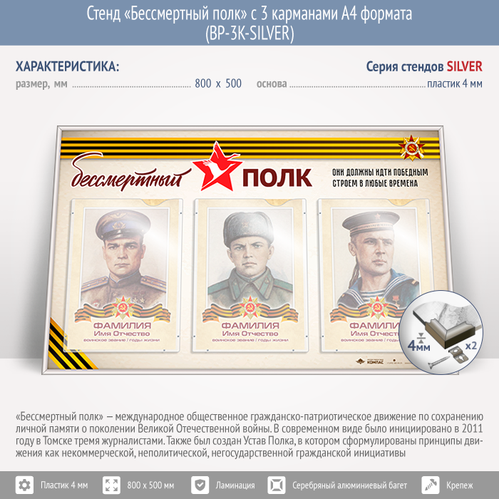 Стенд «Бессмертный полк» с 3 карманами А4 формата (BP-3K-SILVER) в Твери купить