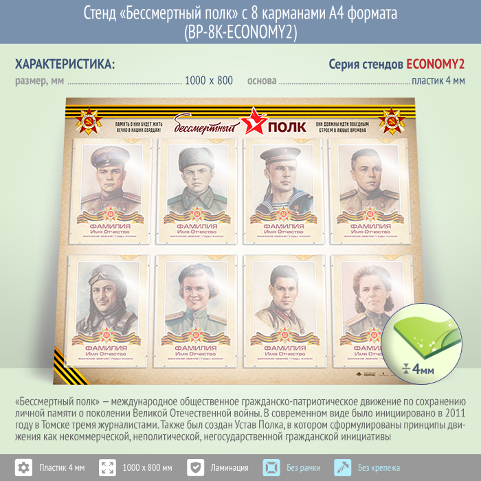 Стенд «Бессмертный полк» с 8 карманами А4 формата (BP-8K-ECONOMY2) в Твери купить