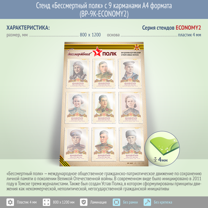 Стенд «Бессмертный полк» с 9 карманами А4 формата (BP-9K-ECONOMY2) в Твери купить