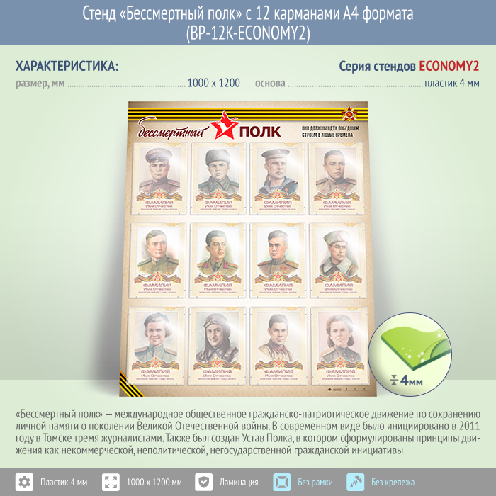 Стенд «Бессмертный полк» с 12 карманами А4 формата (BP-12K-ECONOMY2) в Твери купить