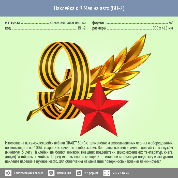 Наклейка к 9 Мая на авто А2 формата (BH-2) в Твери купить