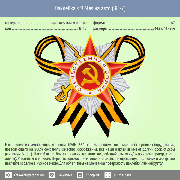 Наклейка к 9 Мая на авто А2 формата (BH-7) в Твери купить