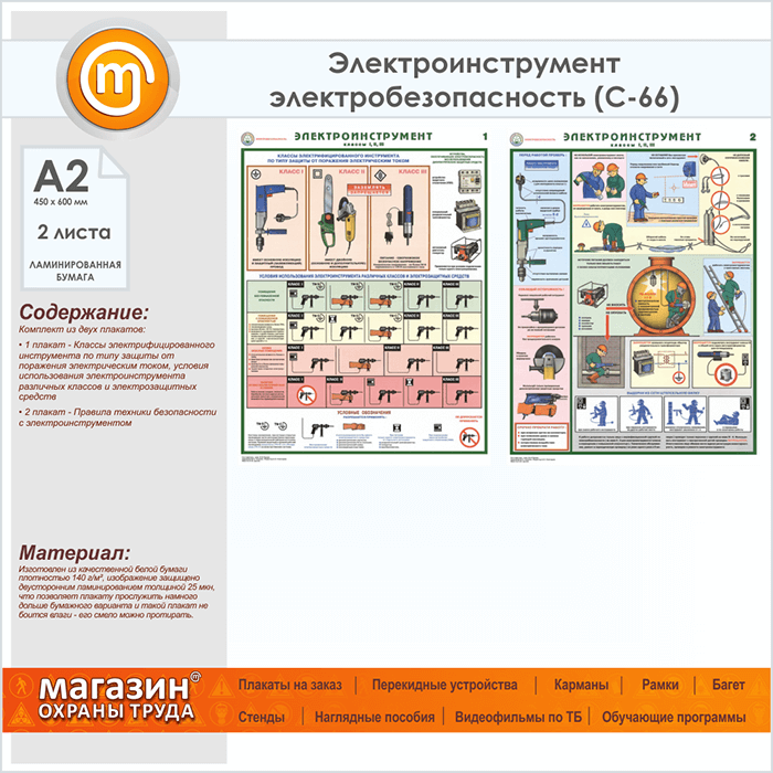 Плакаты «Электроинструмент - электробезопасность» (С-66, ламинированная бумага, А2, 2 листа) в Твери купить