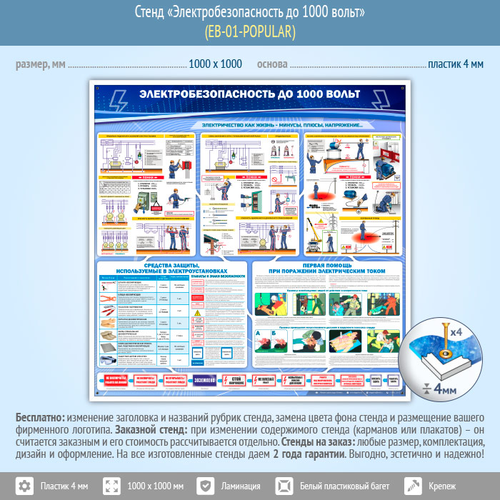 Стенд «Электробезопасность до 1000 вольт» (EB-01-POPULAR) в Твери купить