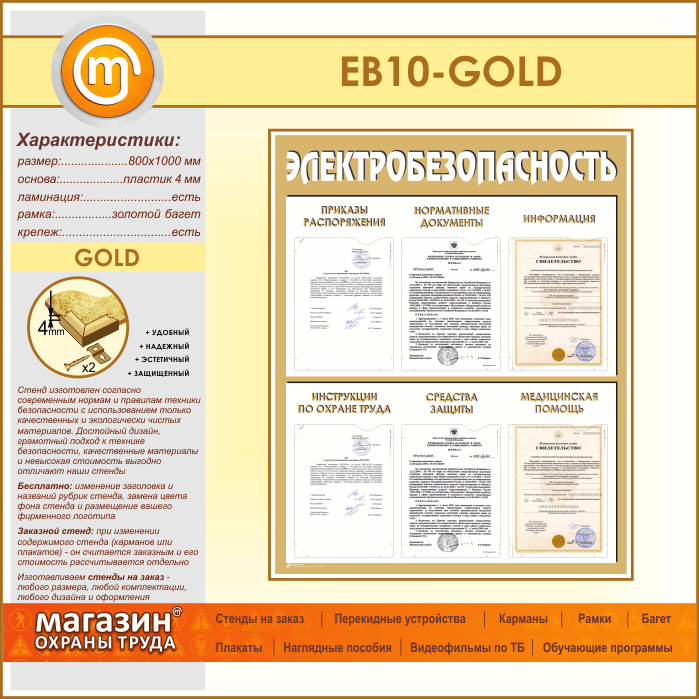 Стенд «Электробезопасность» с 6 карманами (EB-10-GOLD) в Твери купить