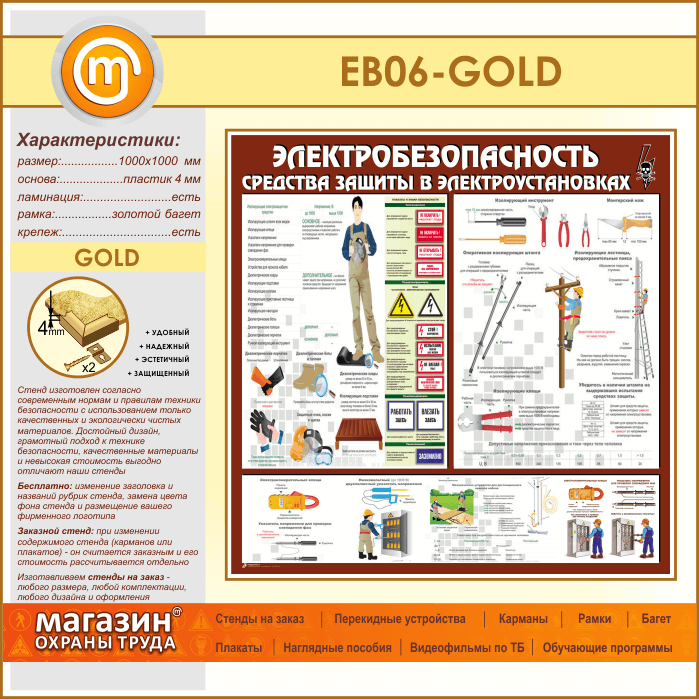 Стенд «Электробезопасность. Средства защиты в электроустановках» (EB-06-GOLD) в Твери купить