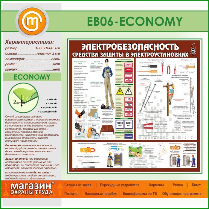 Стенд «Электробезопасность. Средства защиты в электроустановках» (EB-06-ECONOMY) в Твери купить