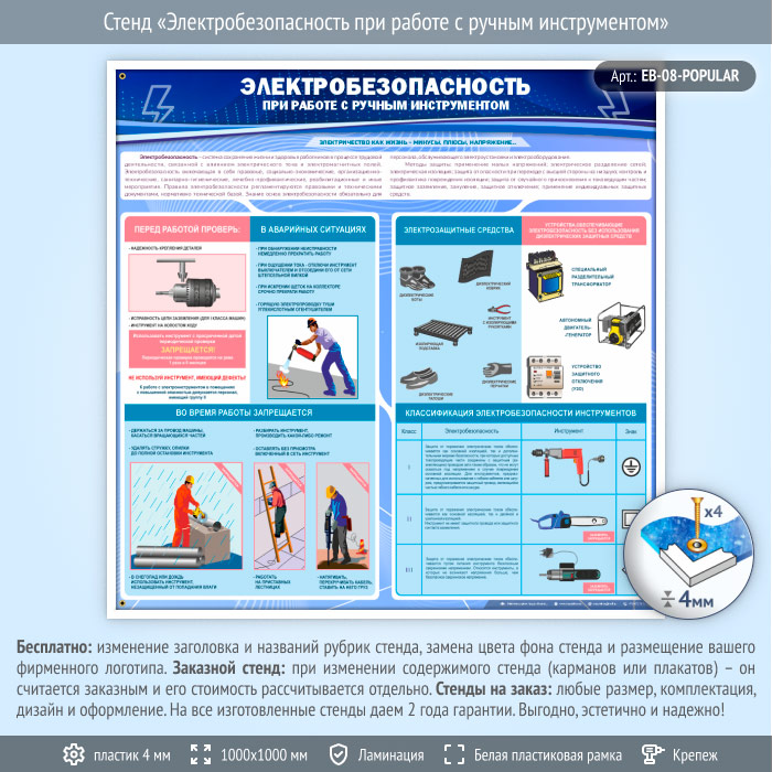 Стенд «Электробезопасность при работе с ручным инструментом» (EB-08-POPULAR) в Твери купить