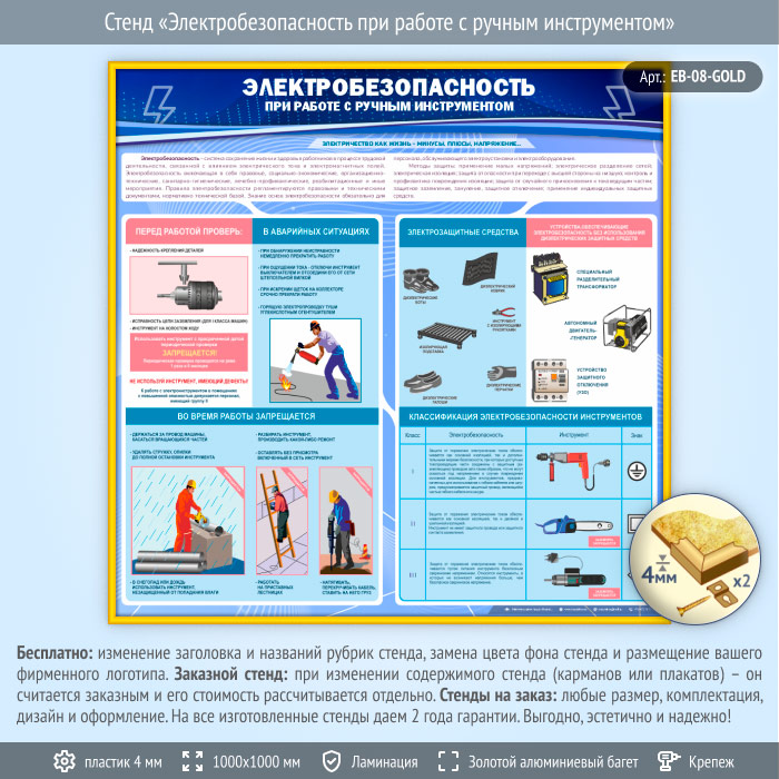 Стенд «Электробезопасность при работе с ручным инструментом» (EB-08-GOLD) в Твери купить