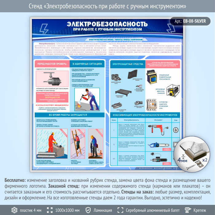 Стенд «Электробезопасность при работе с ручным инструментом» (EB-08-SILVER) в Твери купить