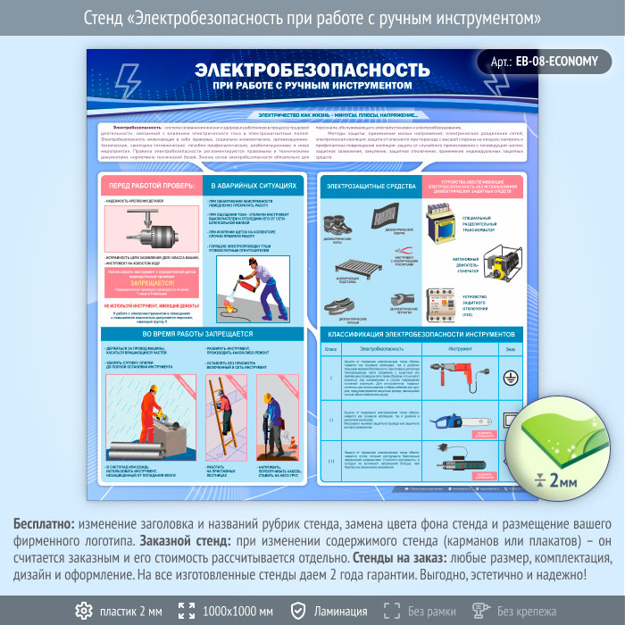 Стенд «Электробезопасность при работе с ручным инструментом» (EB-08-ECONOMY) в Твери купить