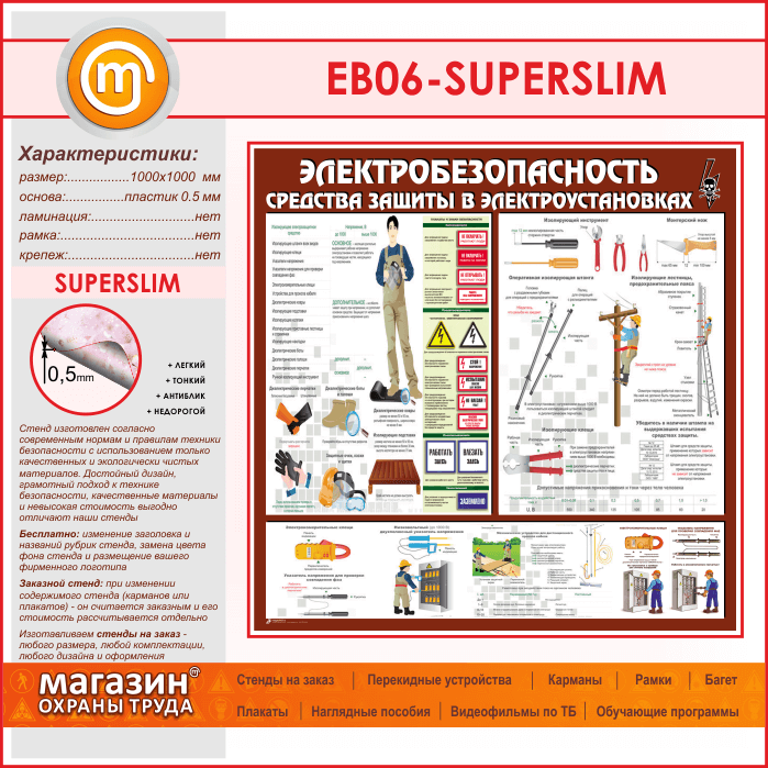Стенд «Электробезопасность. Средства защиты в электроустановках» (EB-06-SUPERSLIM) в Твери купить