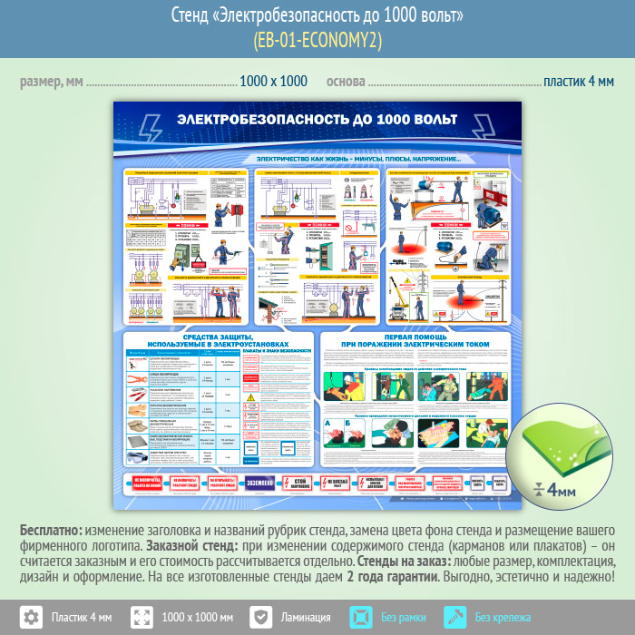Стенд «Электробезопасность до 1000 вольт» (EB-01-ECONOMY2) в Твери купить