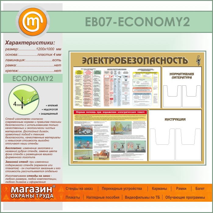 Стенд «Электробезопасность» с 4 объемными карманами (EB-07-ECONOMY2) в Твери купить