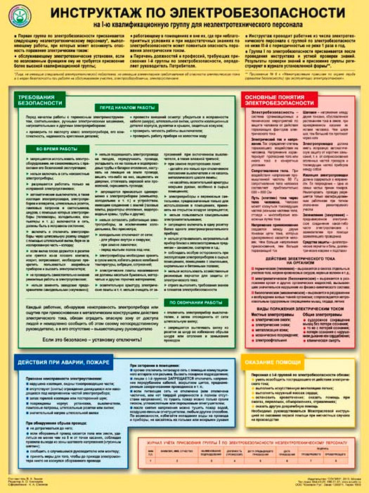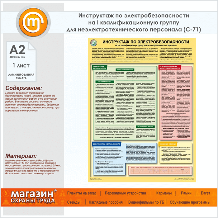 Плакат «Инструктаж по электробезопасности - на I квалификационную группу для неэлектротехнического персонала» (С-71, ламинированная бумага, А2, 1 лист) в Твери купить