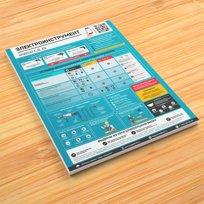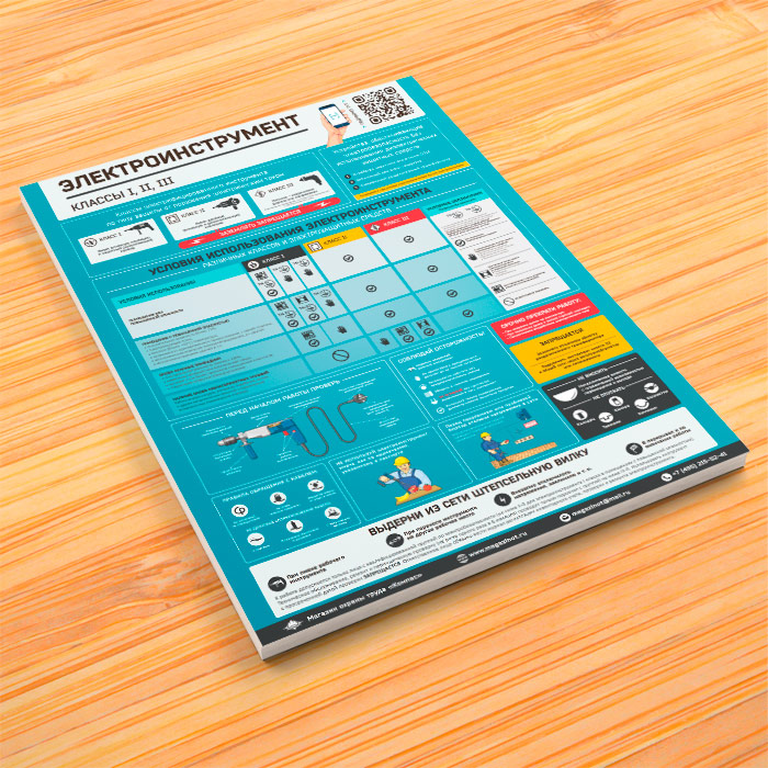 Плакат «Электроинструмент - электробезопасность» (М-66, ламинированная бумага, А2, 1 лист) в Твери купить