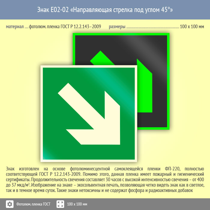 Знак E02-02 «Направляющая стрелка под углом 45°» (фотолюминесцентная пленка ГОСТ 34428-2018, 100х100 мм) в Твери купить