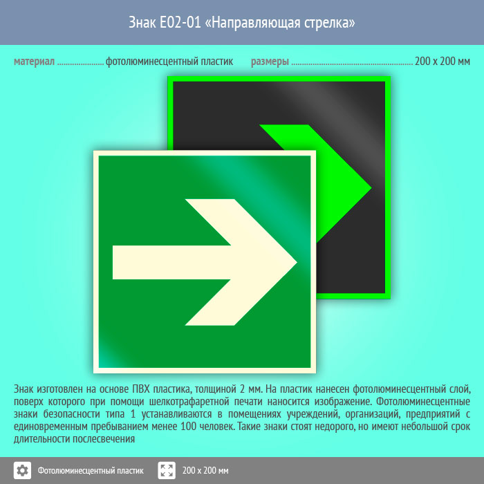 Знак E02-01 «Направляющая стрелка» (фотолюминесцентный пластик, 200х200 мм) в Твери купить
