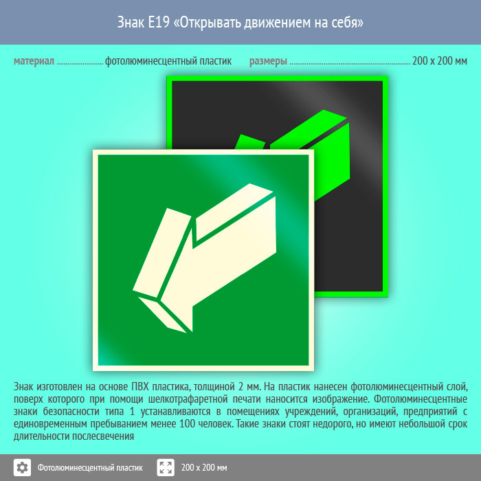 Знак E19 «Открывать движением на себя» (фотолюминесцентный пластик, 200х200 мм) в Твери купить