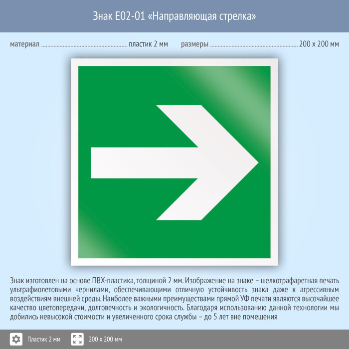 Знак E02-01 «Направляющая стрелка» (пластик, 200х200 мм) в Твери купить