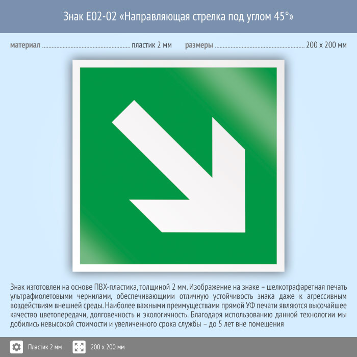 Знак E02-02 «Направляющая стрелка под углом 45°» (пластик, 200х200 мм) в Твери купить