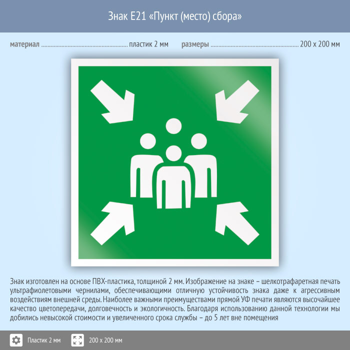 Знак E21 «Пункт (место) сбора» (пластик, 200х200 мм) в Твери купить