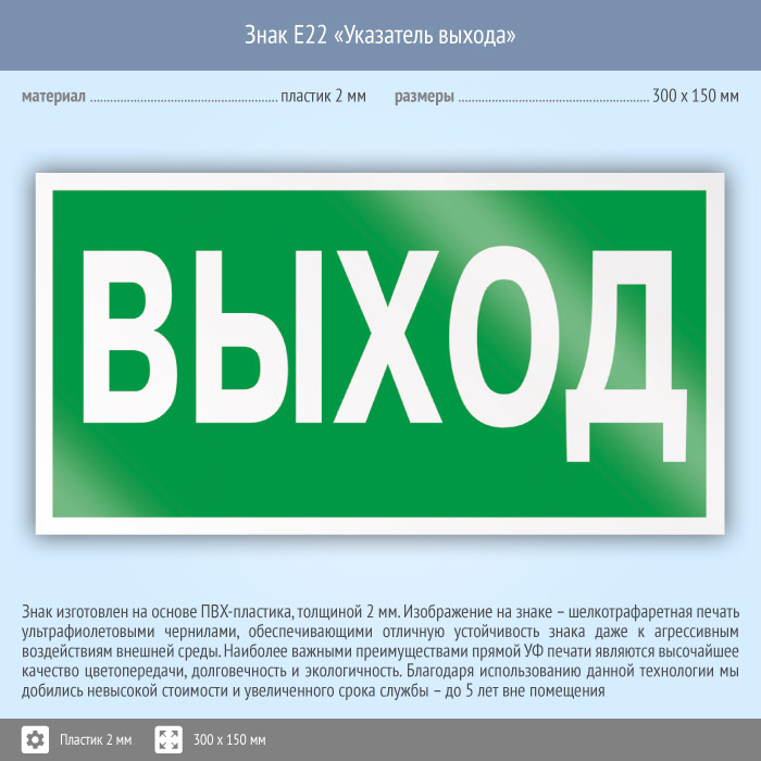 Знак E22 «Указатель выхода» (пластик, 300х150 мм) в Твери купить