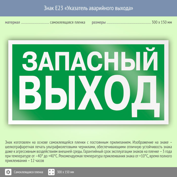 Знак E23 «Указатель запасного выхода» (устаревший) (пленка, 300х150 мм) в Твери купить