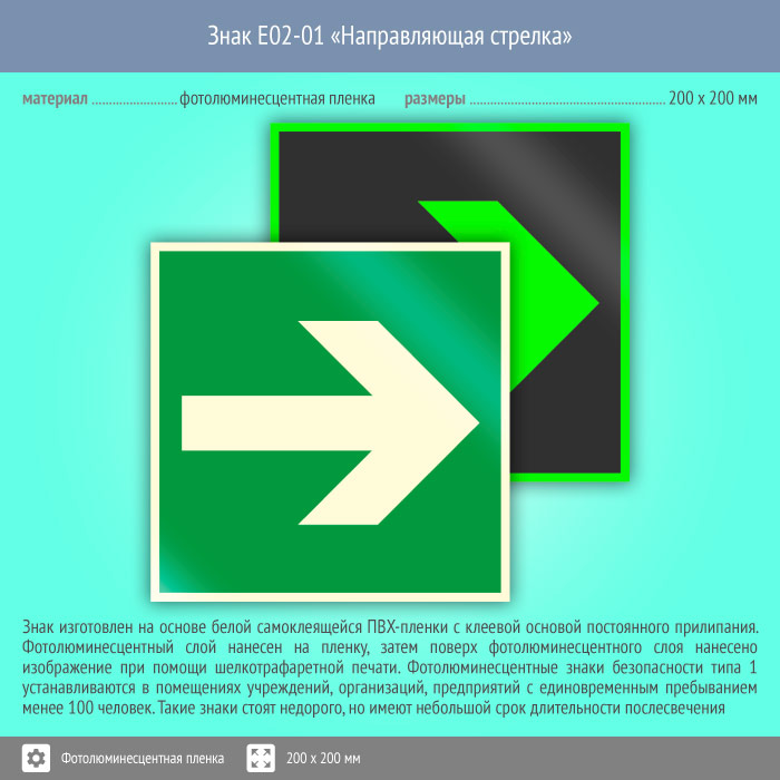 Знак E02-01 «Направляющая стрелка» (фотолюминесцентная пленка, 200х200 мм) в Твери купить