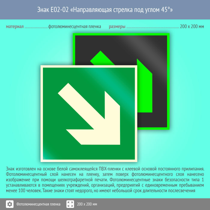 Знак E02-02 «Направляющая стрелка под углом 45°» (фотолюминесцентная пленка, 200х200 мм) в Твери купить