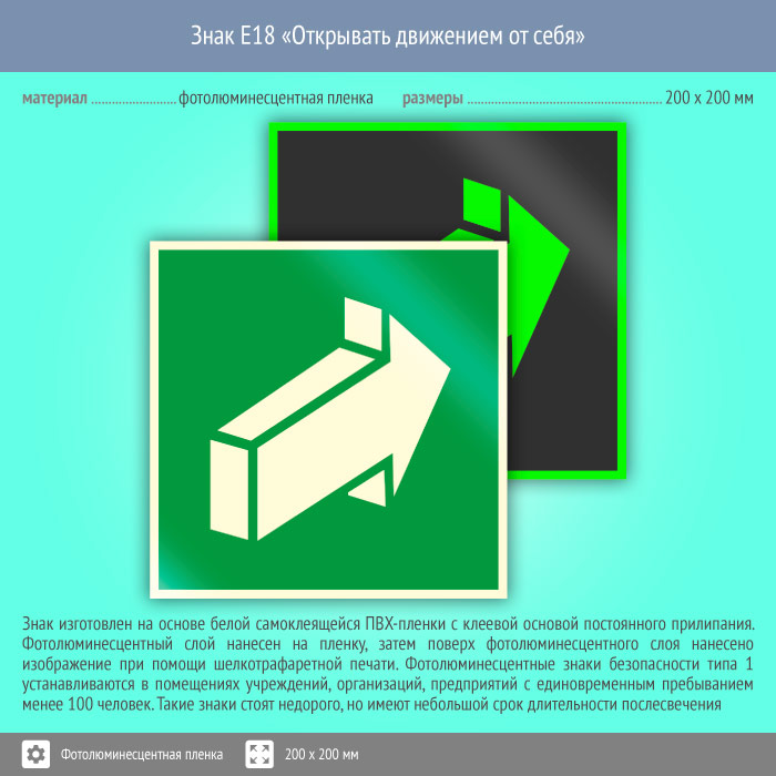 Знак E18 «Открывать движением от себя» (фотолюминесцентная пленка, 200х200 мм) в Твери купить